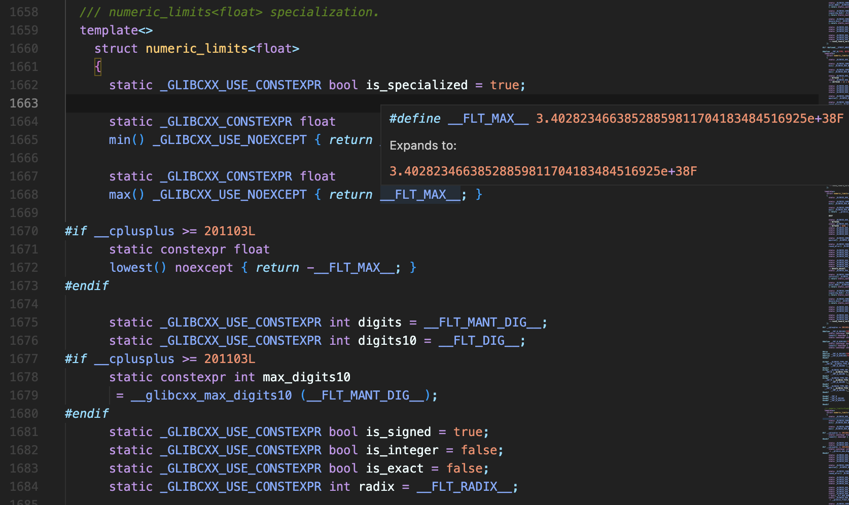 아래 코드는 실제 <limits>에 정의된 numeric_limits<float> 입니다.