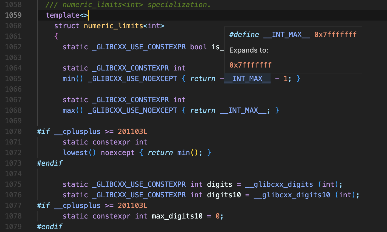 - 템플릿 특수화(specialization)은 각 numeric type에 대해 다음과 같이 numeric limits를 정의합니다.