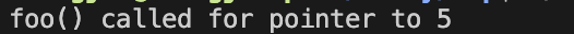 std::cout << "foo() called for pointer to " << *val << std::endl;