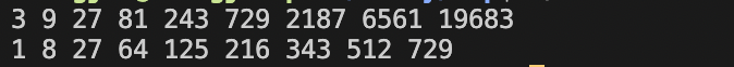 // print all elements raized to the power of 3