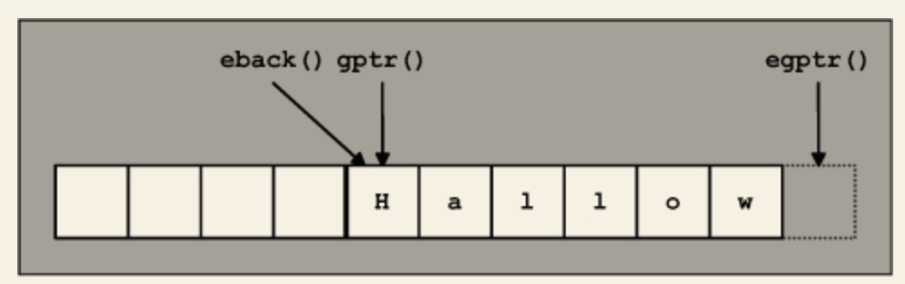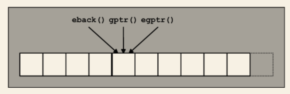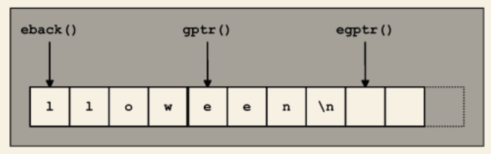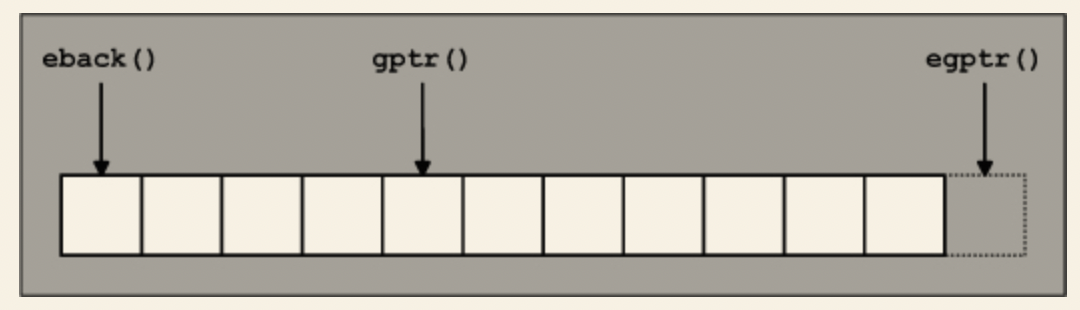 - egptr() ("end get pointer") - 입력 버퍼의 끝을 나타냅니다.
