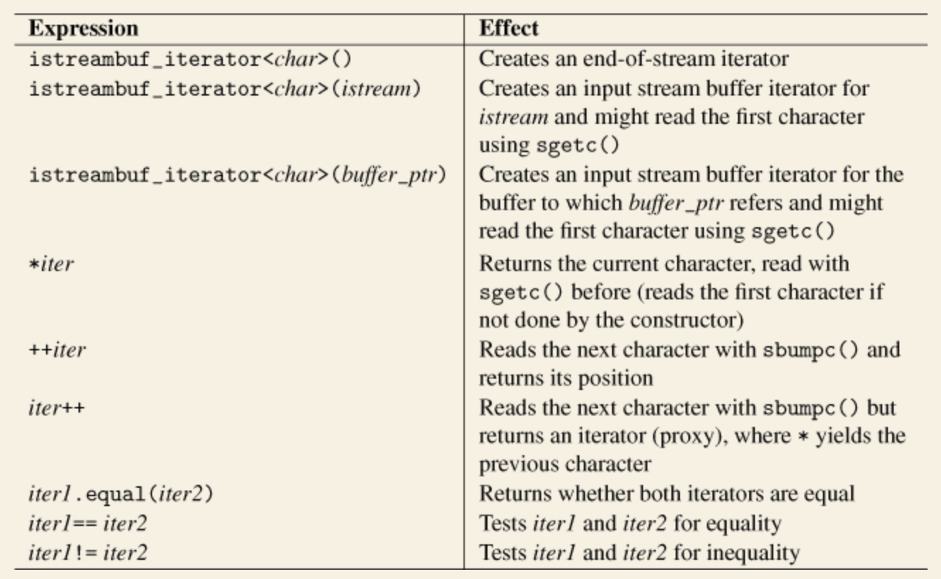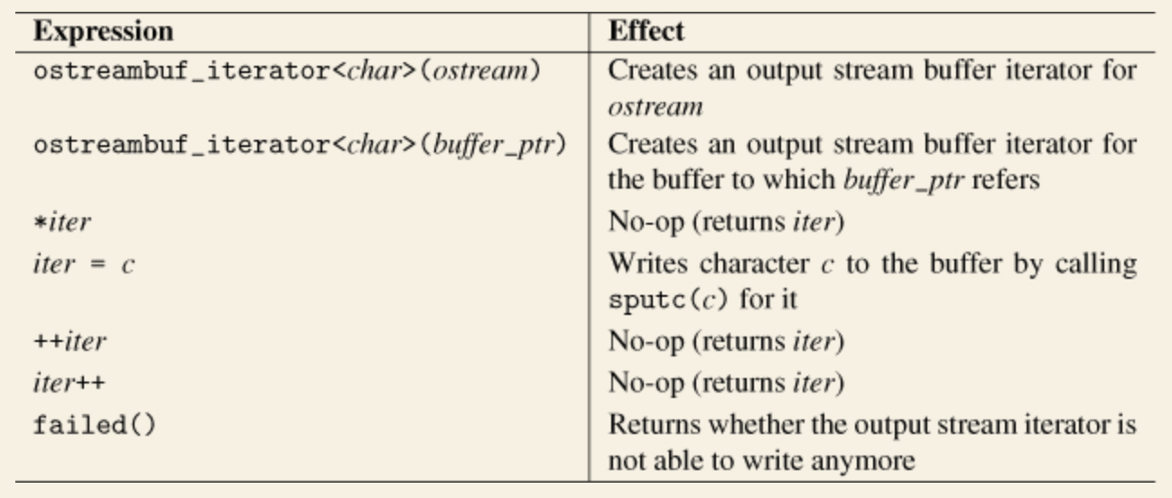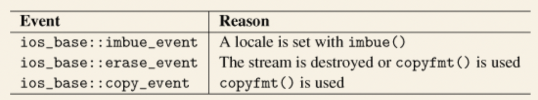 - unitbuf 플래그는 각 출력 연산 후 출력 스트림을 스트림으로 flush 합니다. 이에 맞추어 flush와 endl 조작자도 스트림을 flush 합니다. 최고의 성능을 위해서는 3가지 모두 발생하지 않는 편이 좋습니다. 예를 들어, 콘솔에 쓴다고 하면 한 줄을 완성한 다음 스트림에 flush 하는 것이 합리적입니다. 만약 unitbuf, flush, endl을 많이 사용하는 프로그램을 만든다면, 스트림 버퍼를 flush하기 위한 sync()를 사용하지 않는 대신 적절한 때에 다른 함수를 사용하는 특별한 스트림 버퍼를 사용하는 편이 좋습니다.