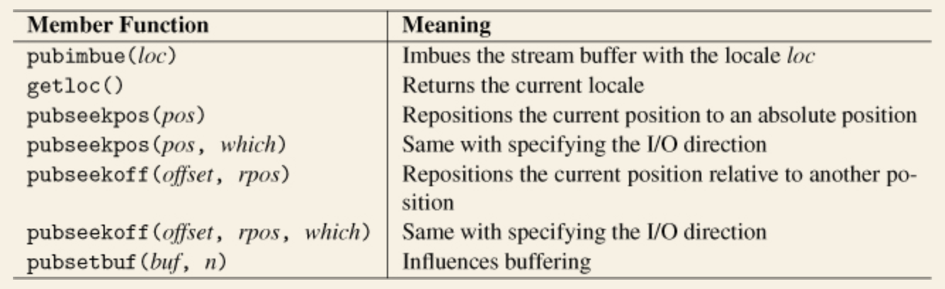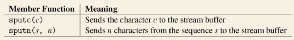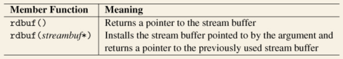 unformatted I/O에 대해서, 대부분의 연산들은 쓸모가 없습니다. 따라서 unformatted I/O를 한다면 스트림 버퍼를 직접 사용하는 편이 좋습니다. 이러한 기능을 지원하기 위해 스트림 버퍼에서 다음과 같이 << 연산자나 >> 연산자를 사용할 수 있습니다.
