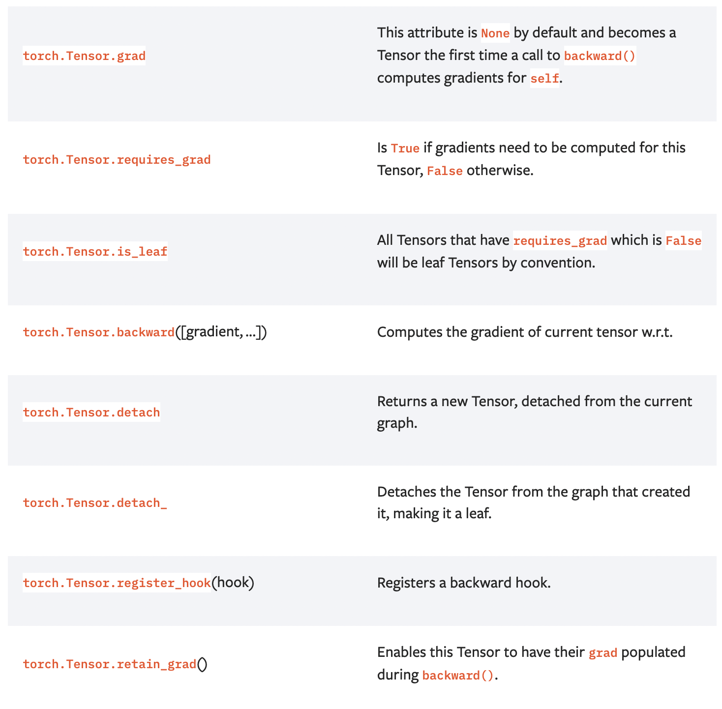 torch.Tensor의 autograd 관련 API는 아래와 같습니다.