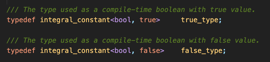다행히 C++ 표준 라이브러리에서는 C++11부터 <type_traits>에 std::true_type과 std::false_type이라는 타입을 제공합니다.