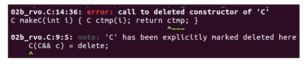 이론적으로 위의 경우, 두 개 이상의 복사본을 만들 수 있다. 지역 변수 vtmp는 make_v() 함수의 (이름이 없는) 리턴값으로 복사되고, 이는 다시 최종 결과 벡터 v로 복사된다. 하지만 실제로 이런 일은 발생하지 않는다. 실제로는 make_v()의 (이름이 없는) 임시 리턴값이 복사되지 않고 최종 결과 벡터 v로 이동된다. 하지만, 대부분의 경우 이마저도 발생하지 않는다.