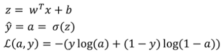 \(\rightarrow a^{(i)} = \hat{y}^{(i)} = \sigma(z^{(i)}) = \sigma(w^Tx^{(i)} + b)\)