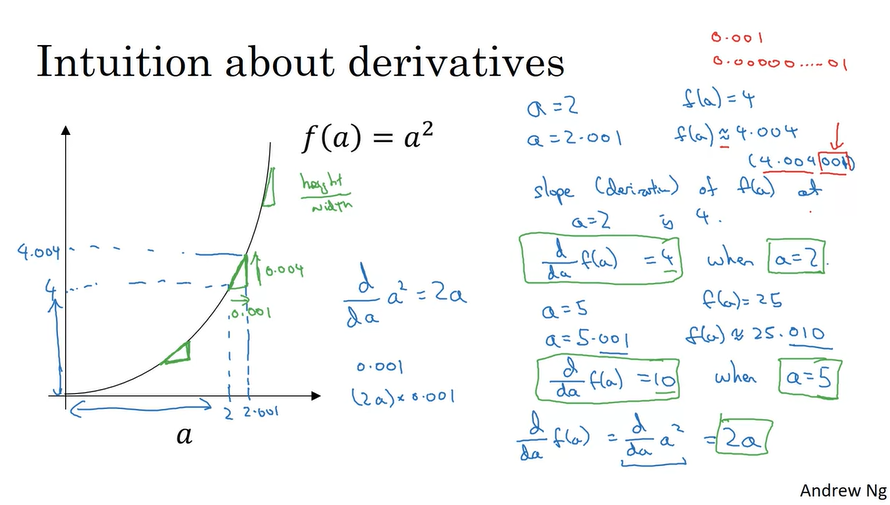 다시 말해서 a의 값을 0.001만큼 증가시키면, J는 어떻게 되는지 살펴보자.