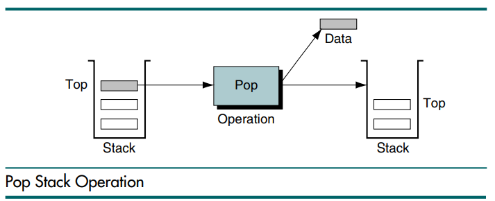 Pop은 스택의 top에 존재하는 데이터를 삭제하는 것이며, Pop 또한 잠재적인 문제가 발생할 수 있는데, 만약 현재 스택에 아무런 데이터가 없이 비어있다면, 스택은 underflow 상태가 되어서 에러가 발생한합니다. Top에 존재하는 데이터를 지우면서 그 데이터를 반환하는 경우도 있지만 우리는 top이라는 동작도 구현할 예정이므로 pop함수에서는 데이터를 삭제만 하는 걸로 정의하고 아래서도 반환은 안하는 걸로 구현해보도록 하겠습니다.