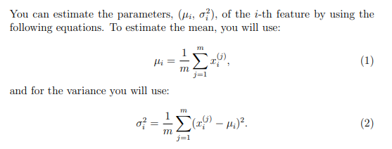 가우시안 분포를 갖는 X 행렬의 평균과 분산을 구하면 됩니다. 평균과 분산을 구하는 공식은 아래와 같습니다.