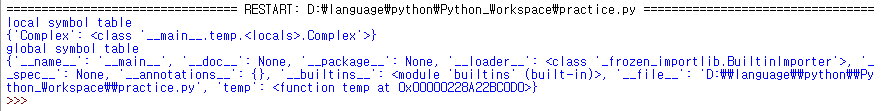이번에는 함수 안에서 클래스를 정의하고 지역심볼테이블과 전역심볼테이블을 살펴볼까요?