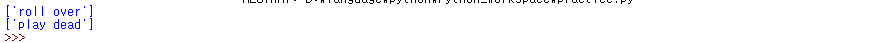 위의 출력 결과는 'roll over'만 출력해야할 것 같지만, play dead까지 출력하는 것을 볼 수 있습니다.