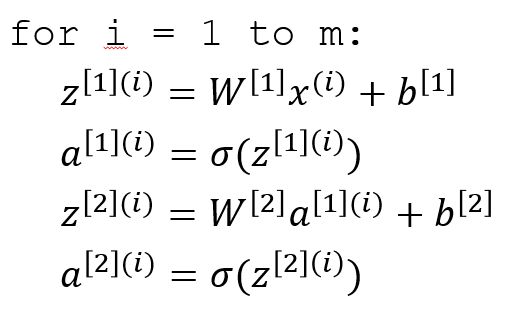 이제까지 한 개의 training example에 대해서 NN에서의 FP를 알아봤고, m개의 training examples에 대한 FP를 알아보도록 하자. 방금 우리는 한 개의 training example에 대해서