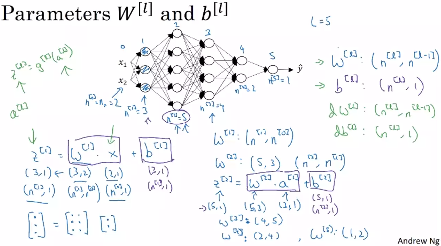 - \(n^{[l]}\) : Number of units of layer \(l\)