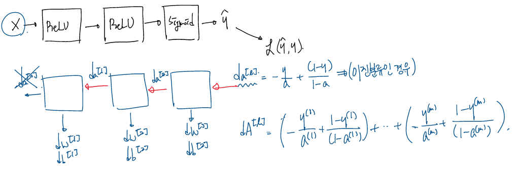 여기서 FP의 경우에는 입력 \(X\)로 초기화되어서 계산되고, BP의 경우에는 \(dA^{[L]}\)을 초기값으로 계산된다.