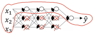 NN에서 dropout을 도입하게 되면, 위와 같이 unit이 제거될 수있고, 또는 다른 unit이 제거될 수도 있다.