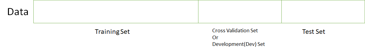 일반적으로 Data Set을 70:30으로 Training Set과 Test Set으로 분리하거나, Dev Set, 즉, Cross Validation(CV) Set이 추가되면, 60:20:20으로 Training/Dev/Test Set으로 분리한다.