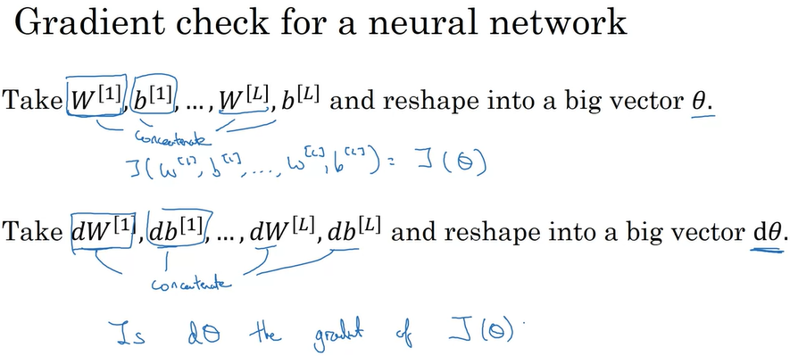 2. dW, db를 d\(\theta\)로 만들어서 \(J(\theta)\)의 기울기와 비교한다.