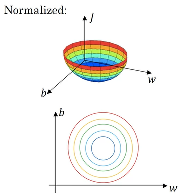 만약 normalization을 사용해서 더 구형의 contour를 띄고 있다면, 어디서 시작하더라도 Gradient Descent가 바로 최소값에 도달할 수 있다.
