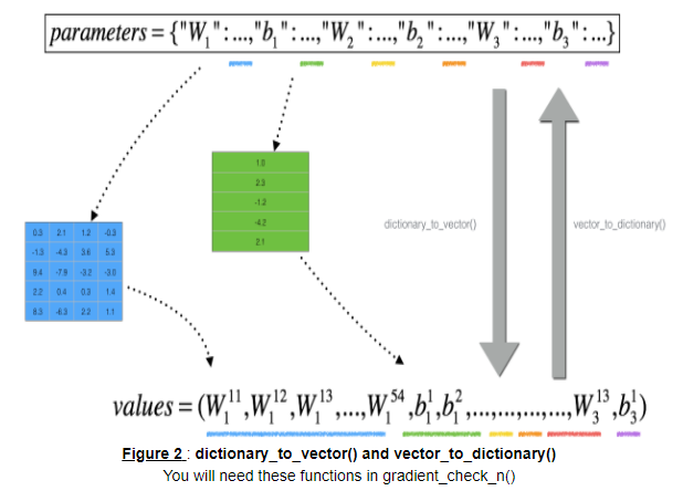 def gradient_check_n(parameters, gradients, X, Y, epsilon = 1e-7):