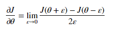 즉, \(\frac{\partial J}{\partial \theta}\)는 정확하게 계산된 gradient이고, 우리는 위 식을 통해서 근사치를 구하고, 비교해서 BP가 정상적으로 동작했는지 확인합니다.