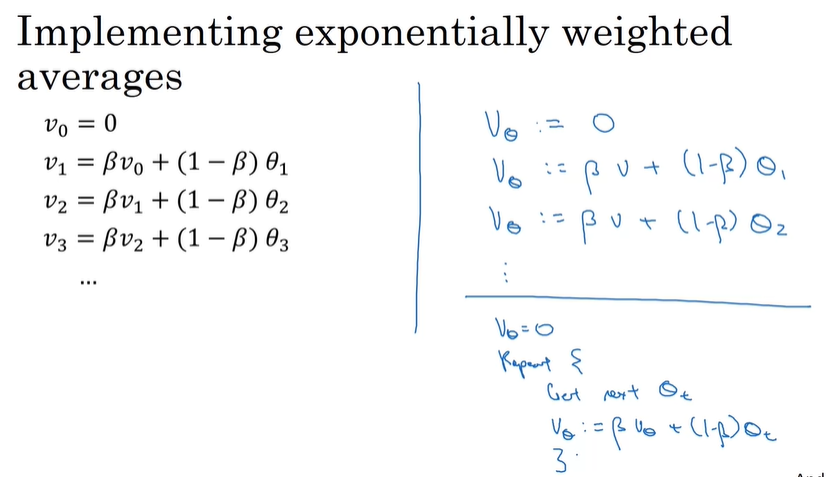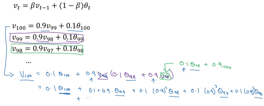 이런 점 때문에 Exponentally weighted average라고 불린다.