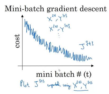 정리하면 mini-batch t : \(X^{\{t\}}, Y^{\{t\}}\) 이며, t는 mini-batch의 index이다.