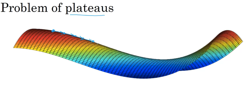 기울기가 0이거나 0에 근접하기 때문에 표면이 매우 완만해서, plateaus 구간을 빠져나오는데 굉장히 많은 시간이 소요될 수 있다.