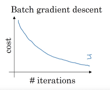전체 training set에서 GD를 진행하면 우리는 매 반복마다 Cost가 계속 감소할 것을 기대한다. 만약 한 번의 iteration에서 Cost가 증가한다면, 어딘가 문제가 발생했다는 것을 의미한다. 아마 learning rate가 매우 큰 경우에 이러한 현상이 발생할 수 있다.
