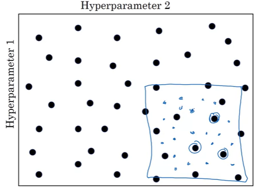 하이퍼파라미터를 샘플링하는 경우에 Coarse to find searching 방법이 자주 사용되는데, 이 방법의 아이디어는 다음과 같다.