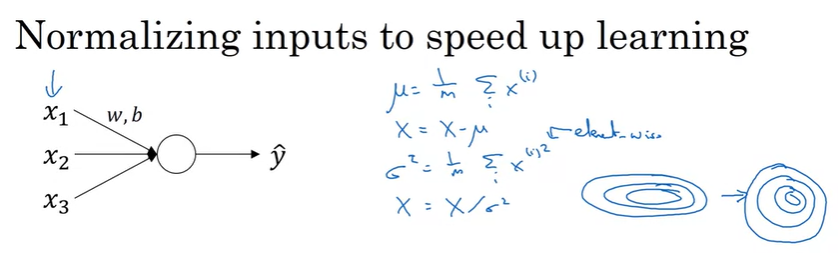 Logistic Regression이나 Linear Regression에서의 Normalization은 input의 평균과 분산을 조절해서 더 동그란 모습으로 cost를 변형해서 GD의 속도를 높혀준다.