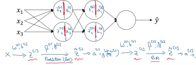 이렇게 normlization을 통해서, \(\widetilde{z}^{[l](i)}\)를 사용해서 모델에 fitting하면 된다.