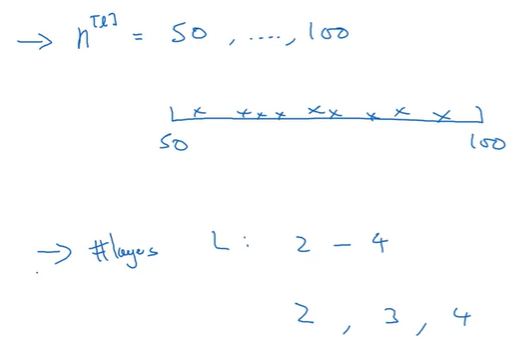 만약 우리가 hidden unit의 개수인 \(n^{[l]}\)의 값을 탐색한다고 가정해보자. 그리고 잘 동작하는 범위는 50 ~ 100이라고 가정하자. 이 경우에는 특정 hidden unit의 개수가 50~100사이의 값으로 선택하는 것이 비교적 합리적인 방법이라고 할 수 있다.
