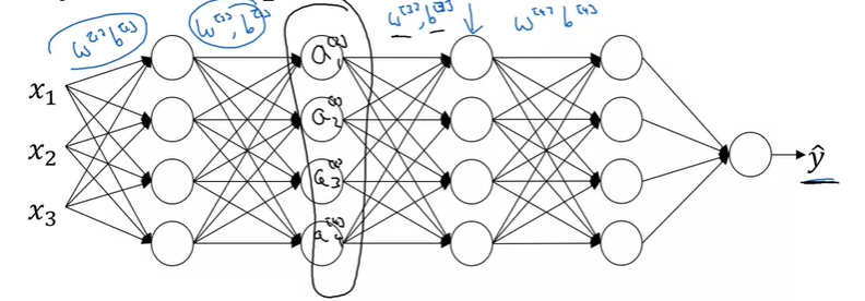 \[W^{[1]}, b^{[1]}, W^{[2]}, b^{[2]}, \cdots, W^{[l]}, b^{[l]}\]