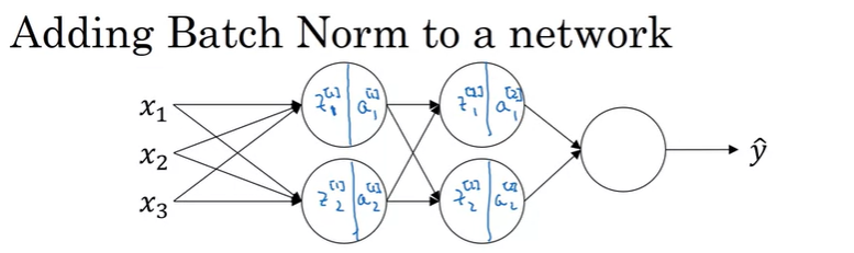 이 방법이 Batch Normalization이고 줄여서 Batch Norm이라고 한다. 엄밀히 이야기하자면 \(a^{[2]}\)가 아닌 \(z^{[2]}\)를 Normalization하는 것인데(\(a^{[2]}\)를 Normalization해도됨), 이 방법을 어떻게 적용하는지 살펴보도록 하겠다.