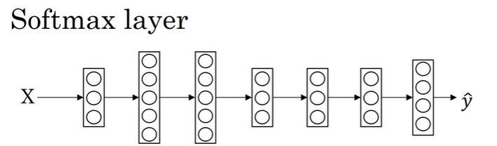 이렇게 위와 같이 여러 클래스에 대해서 확률값을 나타낼 수 있도록 하는 layer(위와 같이 4개의 hidden unit을 갖는)를 Softmax layer라고 한다.