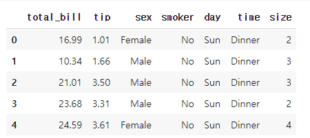 seaborn에 내장되어 있는 dataset으로 tip에 관련된 데이터입니다.