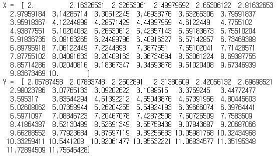 X, Y에 각각 50개의 값을 생성해주었으며, 아래와 같이 나타납니다.