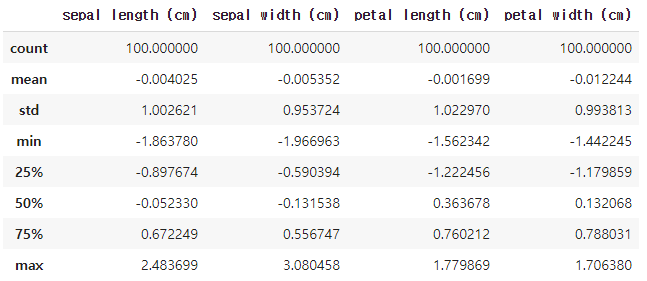 얼추 평균 0, 표준편차 1에 가까운 결과를 얻을 수 있습니다.