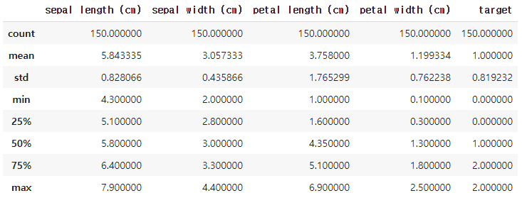 그리고, dataset.describe()을 통해 dataset의 구성을 살펴보면,