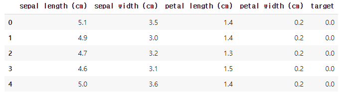 아래처럼 iris 데이터를 읽어오고, pandas DataFrame를 생성해서, 데이터가 어떻게 구성되어 있는지 살펴봅니다.